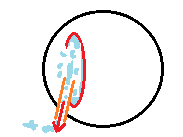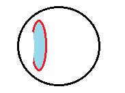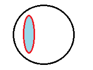 イラストでは水色の部分が白内障の濁りになります。実は、レンズの全体が全て濁って、交換するわけではなく、イラストでいうと赤い袋に包まれた、水色の部分の濁りを、赤い袋を残して、水色の部分を掃除する手術です。