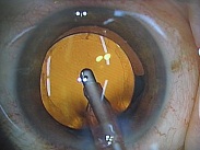 この方は、レンズの濁りを小分けにする方法として、プレチョップという器械を使って、写真では左右に濁りを分割しています。